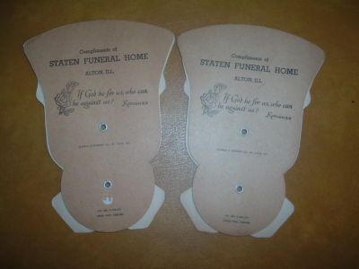 Vintage 40's-50's Advertising Fans STATEN FUNERAL HOME ALTON,IL. 2 Different