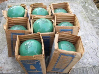 Title (ebay affiliate link): Vintage Lot of Eight Champion Green sign Light Bulbs Standard Base