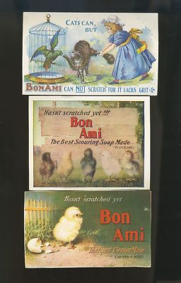 Lot of 3 Victorian Trade Cards Bon Ami Cleanser AS FOUND