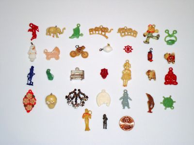 Title (ebay affiliate link): Vintage Toy Charms Cupid, Mr. Peanut Skull Devil face Elephants Cracker Jack?
