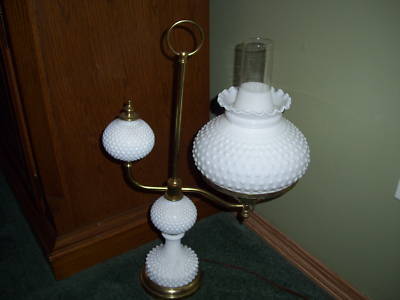 VINTAGE WHITE MILK GLASS HOBNAIL STUDENT PARLOR LAMP
