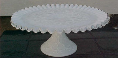 1962 FENTON MILK GLASS CAKESTAND SPANISH LACE SILVER CR