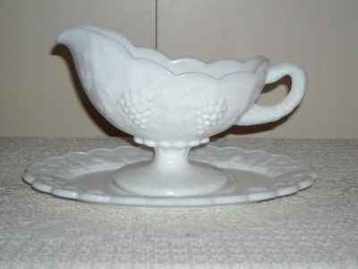 WESTMORELAND MILK GLASS PANELED GRAPE GRAVY & TRAY