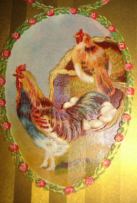 Title (ebay affiliate link): 1912 OLD VINTAGE HOLIDAY EASTER postcard CHICKENS - ROOSTER - HEN - EGGS - Gold