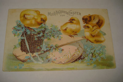 CLAPSADDLE OLD VINTAGE HOLIDAY EASTER postcard CHICKS SEESAW Forget Me Nots