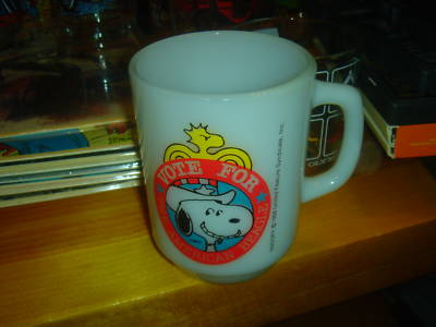VOTE FOR THE AMERICAN BEAGLE SNOOPY MILK GLASS MUG 1980