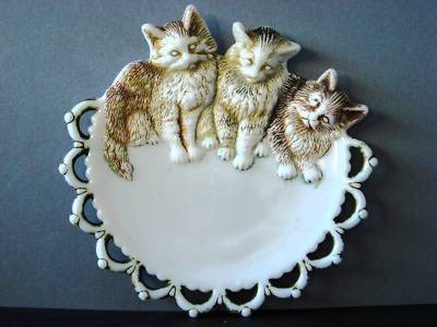 Cute Victorian Milk Glass Plate Three Kitten Cats