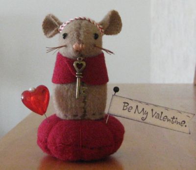 Title (ebay affiliate link): PRIMITIVE VALENTINE'S DAY HEART KEY WOOL MOUSE MAKE DO PIN KEEP PFATT
