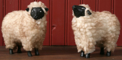Primitive Resin Wooly Plush Sheep Set of 2