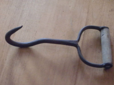 ANTIQUE FARM TOOL - IRON FORGED HAY LOG WOOD ICE HOOK of 10''1/2 WOOD HANDLE