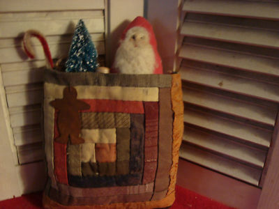 Title (ebay affiliate link): SANTA POCKET FROM ANTIQUE LOG CABIN QUILT ~ PRIMITIVE