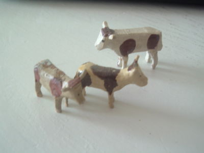~Sweet Set of Old Hand Carved Wooden Cows! Maybe Part of a Noahs Ark?~