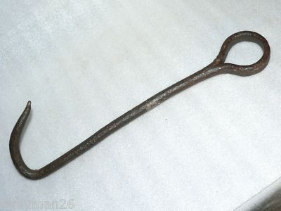 Title (ebay affiliate link): Primitive Cast Iron Hand Forged Meat Hook Gaff Butchering Farm Tool