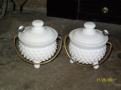 Title (ebay affiliate link): Pair Fenton Milk Glass Hob Nail Mustard/Condiment Pots-MINT CONDITION