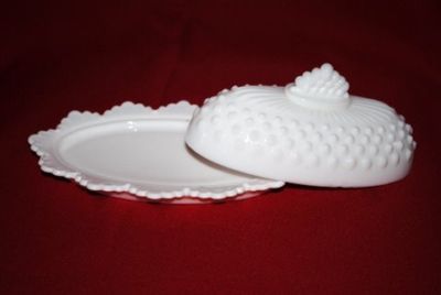 Vintage hobnail milk glass Covered Butter Dish