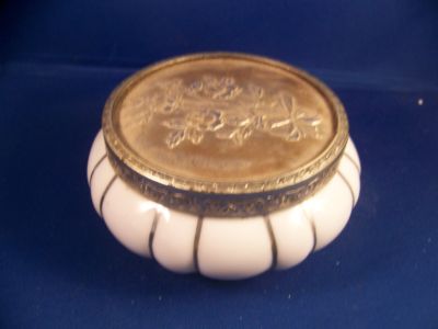 Title (ebay affiliate link): vintage dresser jar, powder box- milk glass bottom, silver plate top, japan