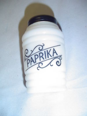 Paprika Milk Glass With Black Spice Jar 4" Tall Vintage