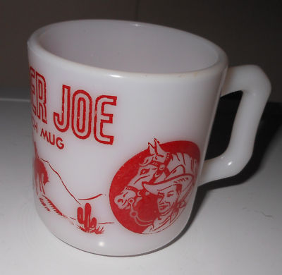 VINTAGE HAZEL ATLAS MILK GLASS COFFEE MUG CUP RANGER JOE RANCH EXCELLENT COND.!