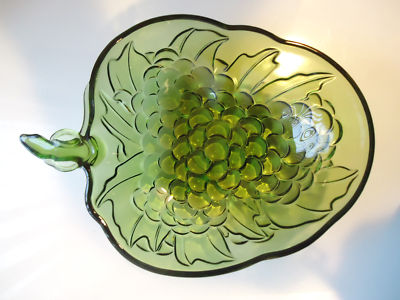 VINTAGE GREEN GRAPE DESIGN SHAPED GLASS DISH