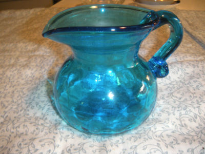 Vintage 40's/50's ANCHOR HOCKING? BLUE GLASS Small Pitcher