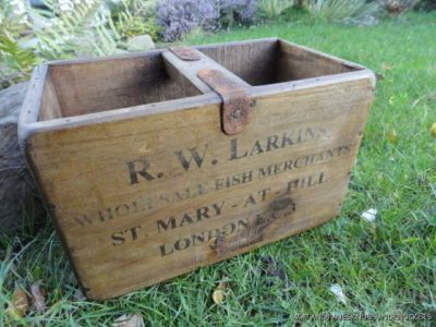 Title (ebay affiliate link): WOODEN ST.MARY AT HILL LONDON FISHMONGERS SHELLFISH CLAMS TRUG FISH CRATE BOX