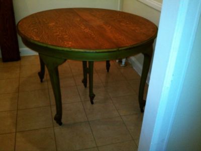 Title (ebay affiliate link): Antique Oak Dining Table with 2 leaves and hand-carved snail feet and wheels
