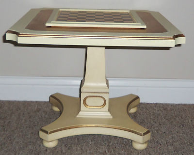 Title (ebay affiliate link): French Provincial Pedestal Side Accent Game Table with Chess & Checker Pieces