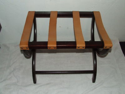 Title (ebay affiliate link): Vintage Folding Wood Luggage Rack Stand Suitcase Stand with Leather Straps Guest