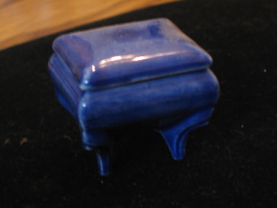 ANTIQUE PORCELAIN VANITY SMALL TRINKET CASKET-BLUE GLAZE