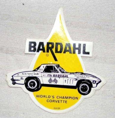 VINTAGE BARDAHL 1960's CORVETTE DECAL STICKER VERY RARE EXCELLENT CONDITION