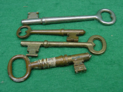 antique vintage old skeleton keys for locks, furniture, cabinet collect four key