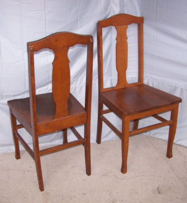 Pair Of Oak Mission Arts and Crafts T Back Chairs