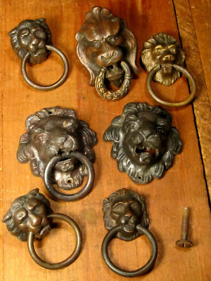 Title (ebay affiliate link): Seven Old Lion Head Drawer Pulls Furniture Hardware Mantel Clock Handles Brass