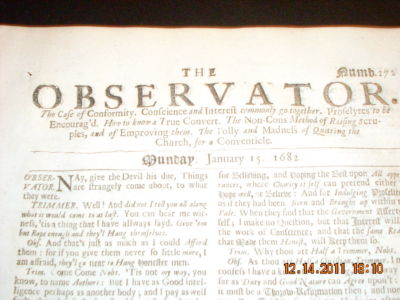 Title (ebay affiliate link): RARE NEWSPAPER THE OBSERVATOR 1682 COMPLETE ORIGINAL ISSUE