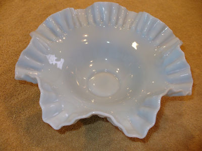 Vintage Blue Milk Glass Ruffled Hobnail Bowl Basket NR