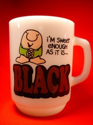 Vintage 1979 ZIGGY Cartoon Anchor Hocking FIRE KING Milk Glass Coffee Mug Nice!