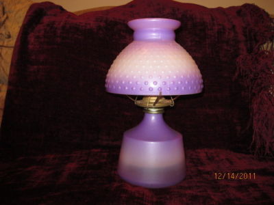 VINTAGE RESIDON PURPLE MILK GLASS OIL LAMP