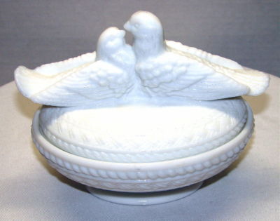 Title (ebay affiliate link): Westmoreland Glass Milk Glass Love Birds Covered Candy Dish