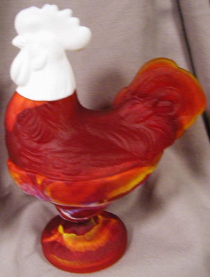 Title (ebay affiliate link): Red & White Marble & Red Top w/Milk Head Satin Covered Standing Rooster