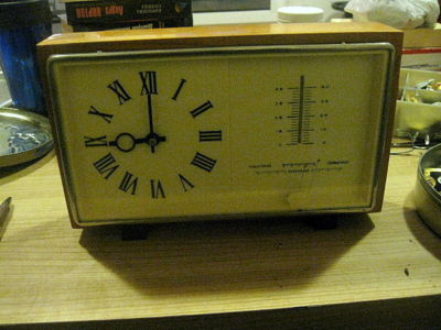 Title (ebay affiliate link): VINTAGE Clock Majak with Built-in Thermometer & Barometer