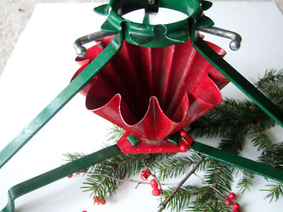 Vintage Antique Red Green Christmas Tree Stand