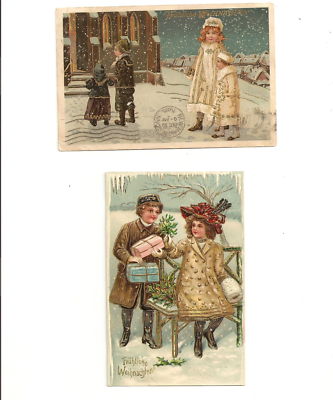 Lot of 2 Early German Christmas Embossed Postcards Frohliche Weihnachten