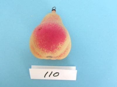 Title (ebay affiliate link): 2 VERY OLD THIN 3 1/4" GLASS HANGING ORNAMENTS - A PEAR AND A PEACH - V/G CON.