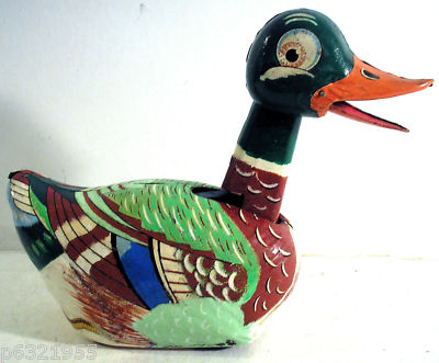 Title (ebay affiliate link): Daiya Pressed Tin/Steel Hand Painted & Lithographed Friction Powered Duck