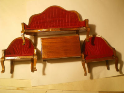 Old Wooden Used Doll Furniture Sofa, 2 Chairs & Table