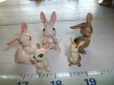 Vintage Bone China Miniature Rabbit animal figurine set of 5 Very Cute!