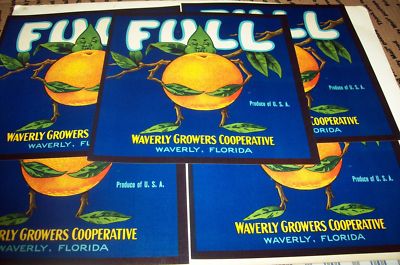 LOT OF 5 VINTAGE FULL FLORIDA CITRUS CRATE LABELS