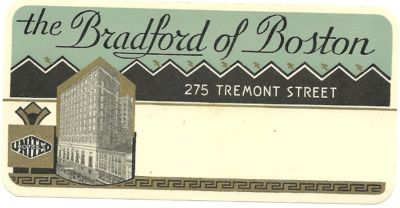 HOTEL BRADFORD luggage DECO label (BOSTON)