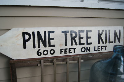 Primitive Vintage Painted Country Wood Arrow Sign Pine Tree Kiln Maine