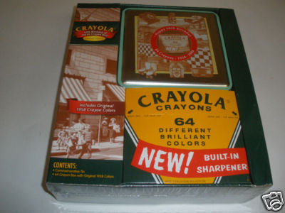 Title (ebay affiliate link): Crayola 64 crayons Commemorative Tin Original 1958 colors SEALED gift package